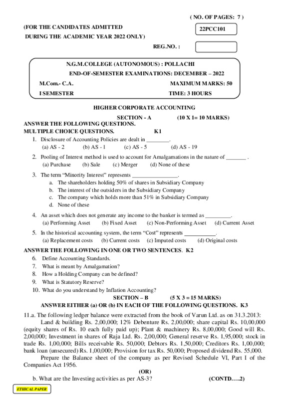 File #1007: "22PCC101- Higher Corporate Accounting.pdf"