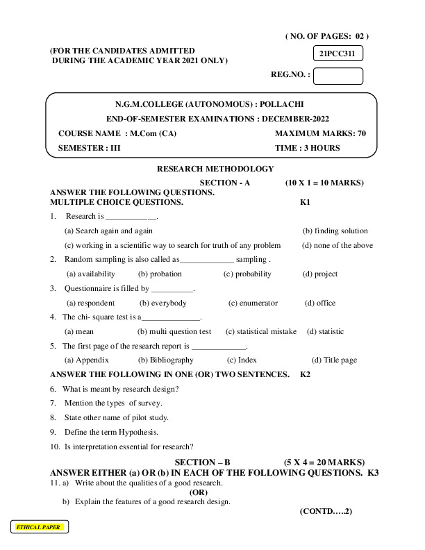 File #1013: "21PCC311-Research methodology QP.pdf"