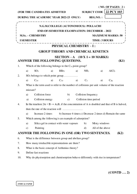 File #1018: "22PCY103 GROUP THEORY AND CHEMICAL KINETICS.pdf"