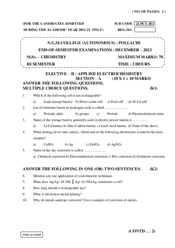 File #1022: "21PCY3E1 APPLIED ELECTROCHEMISTRY.pdf"