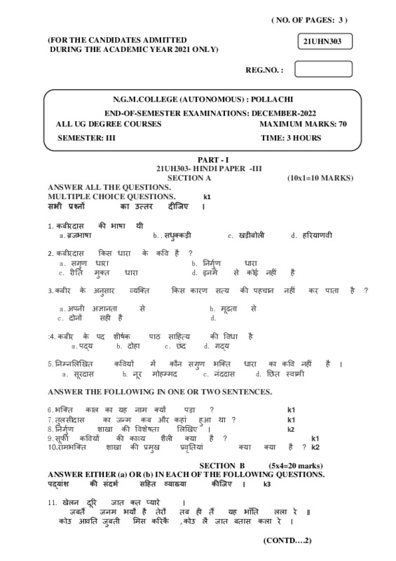 File #1038: "21UHN303-HINDI PAPER-III.pdf"