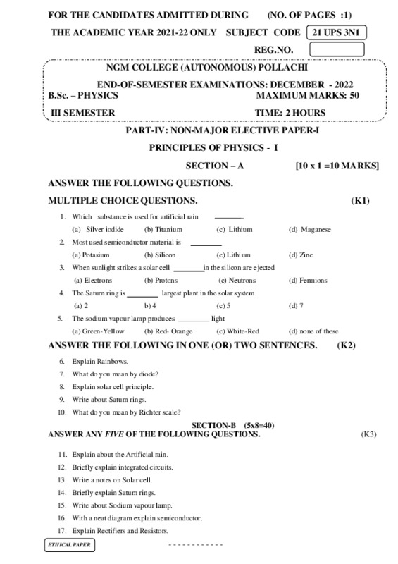 File #1051: "21UPS3N1 - PRINCIPLES OF PHYSICS - I.pdf"