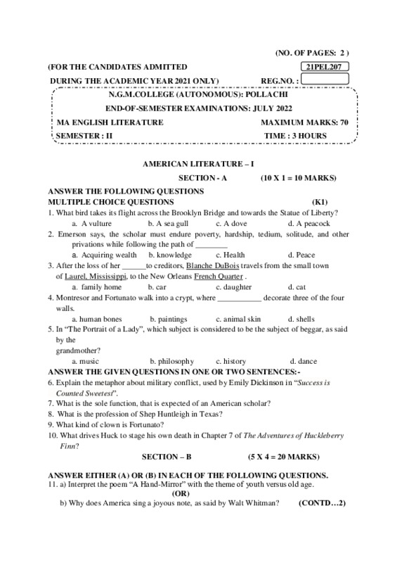 File #110: "21PEL207 - AMERICAN LITERATURE - I.pdf"