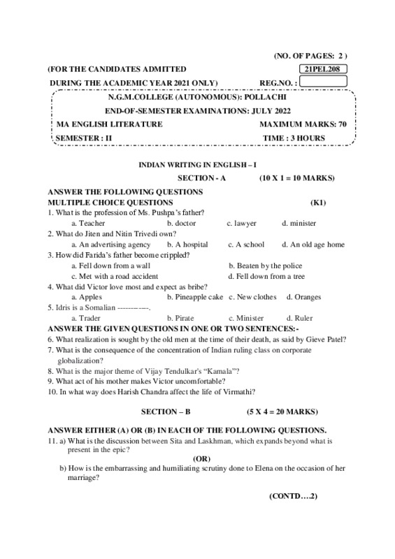 File #111: "21PEL208 - INDIAN WRITING IN ENGLISH - I.pdf"