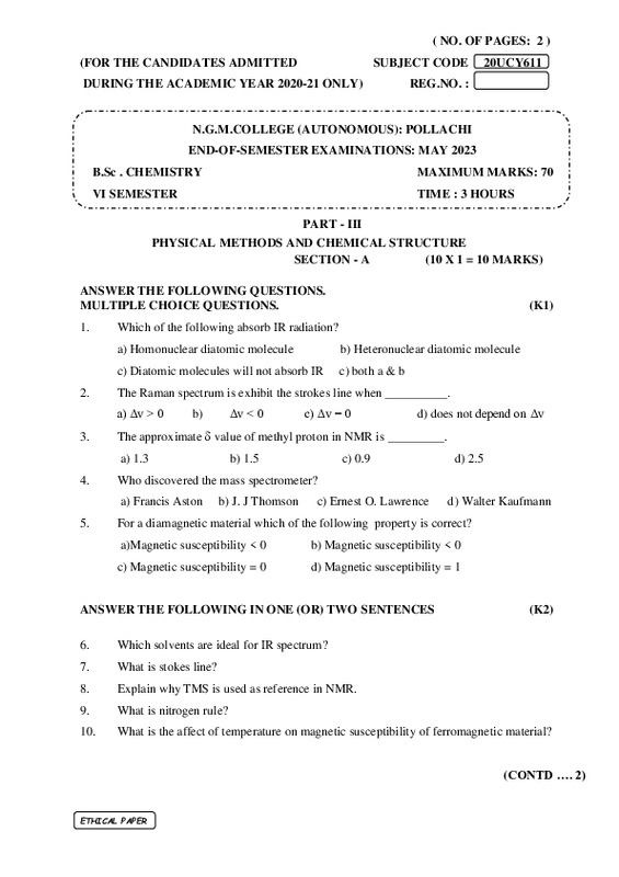 File #1120: "20UCY611 - PHYSICAL METHODS AND CHEMICAL STRUCTURE.pdf"