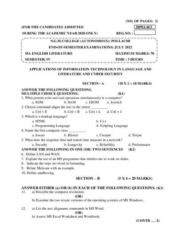 File #113: "20PEL4E3 - APPLICATIONS OF INFORMATION TECHNOLOGY IN LANGUAGE AND LITERATURE AND CYBER SECURITY.pdf"