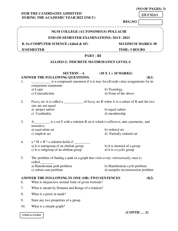 File #1135: "22UCS2A1-DISCRETE MATHEMATICS LEVEL-I.pdf"