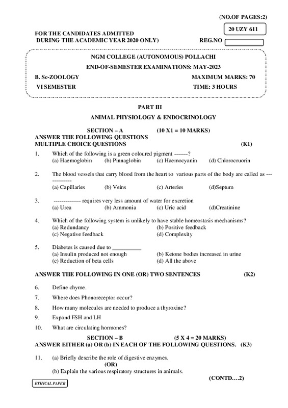File #1140: "20UZY611-ANIMAL PHYSIOLOGY & ENDOCRINOLOGY.pdf"