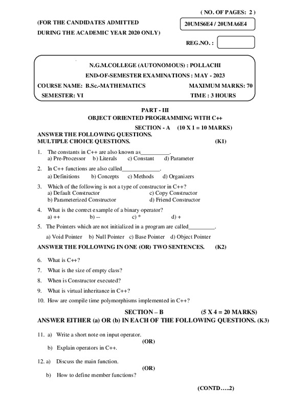 File #1157: "20UMS6E4-OBJECT ORIENTED PROGRAMMING WITH C++.pdf"