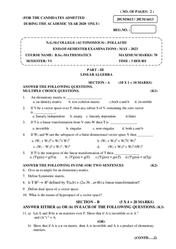 File #1158: "20UMS613-Linear Algebra.pdf"
