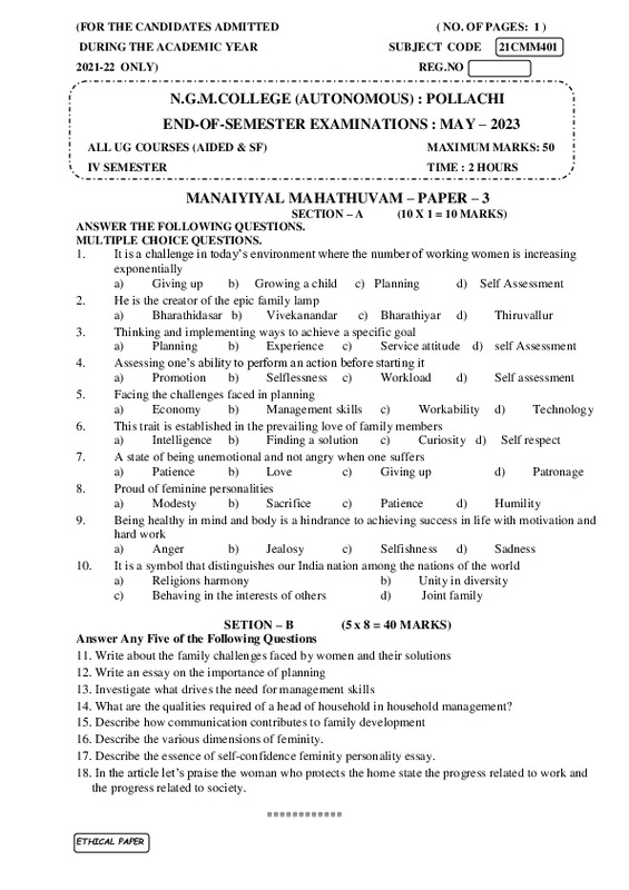 File #1179: "21CMM401 - MANAIYIYAL MAHATHUVAM – PAPER – 3.pdf"
