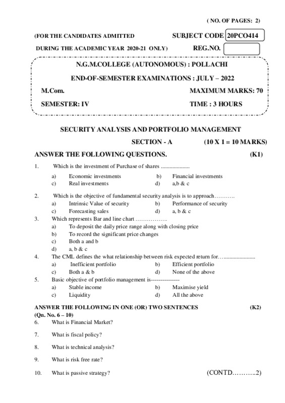 File #122: "20PCO414-SECURITY ANALYSIS AND PORTFOLIO MANAGEMENT.pdf"