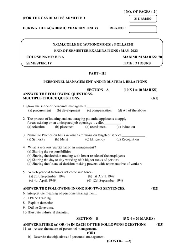 File #1250: "21UBM409 - Personnel Management and Industrial Relations.pdf"