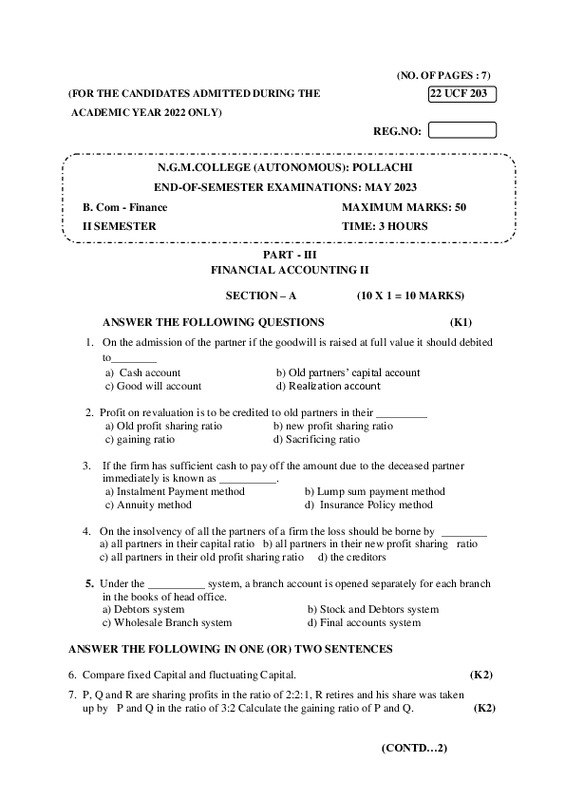 File #1311: "22UCF203 - Financial Accounting - QP.pdf"