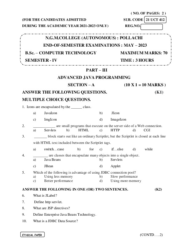 File #1346: "21UCT412 - ADVANCED JAVA PROGRAMMING.pdf"