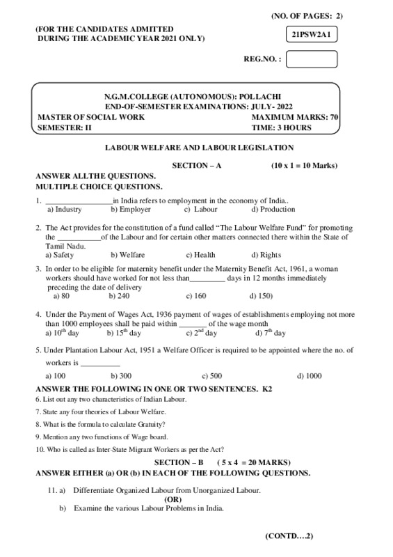 File #138: "21PSW2A1- LABOUR WELFARE AND LABOUR LEGISLATION.pdf"