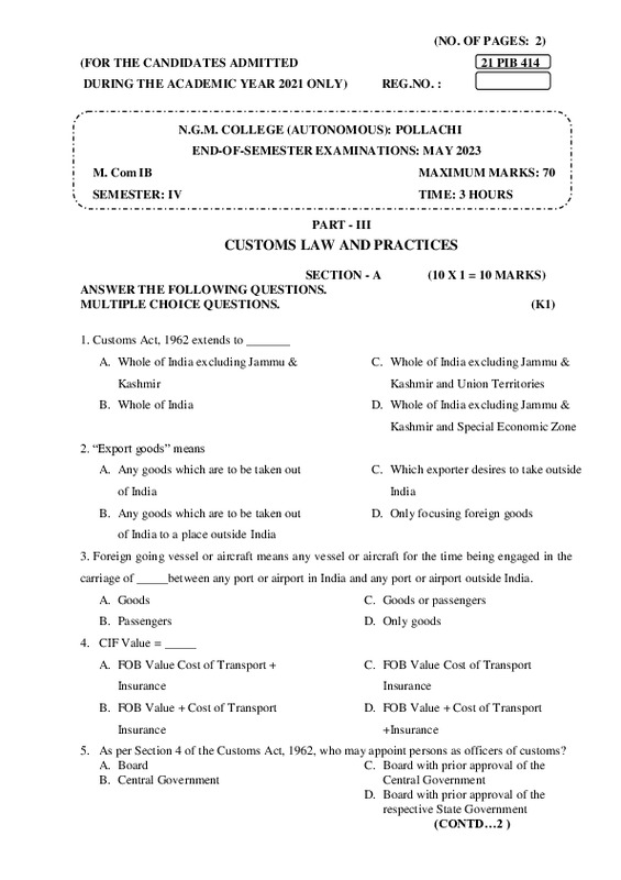 File #1394: "21PIB414 - CUSTOMS LAW AND PRACTICES.pdf"