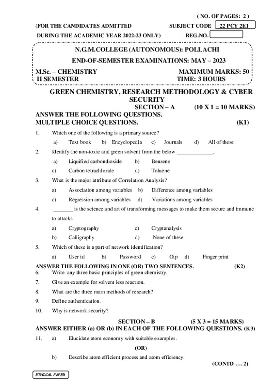 File #1431: "22PCY2E1 - GREEN CHEMISTRY, RESEARCH METHODOLOGY & CYBER.pdf"