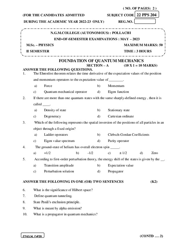 File #1439: "22PPS204 - FOUNDATION OF QUANTUM MECHANICS.pdf"
