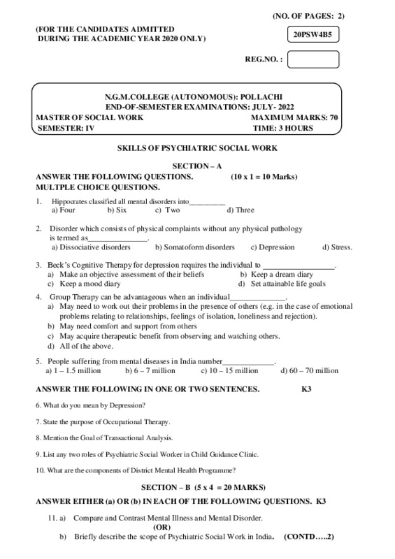 File #147: "20PSW4B5 - SKILLS OF PSYCHIATRIC SOCIAL WORK.pdf"