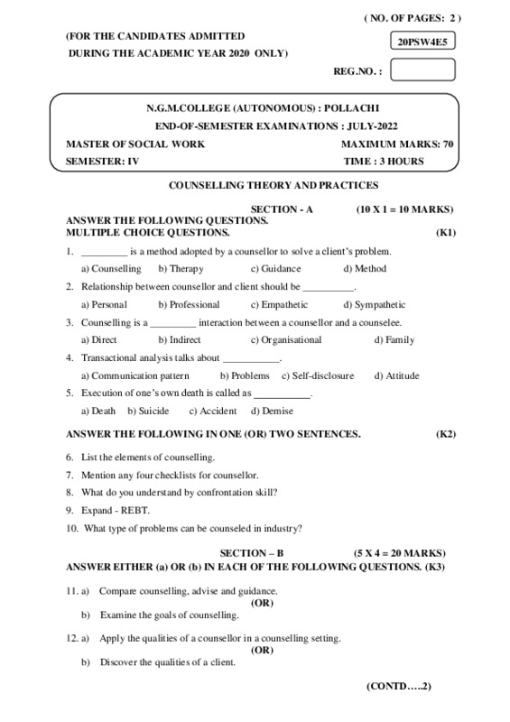 File #148: "20PSW4E5-COUNSELLING THEORY AND PRACTICES.pdf"