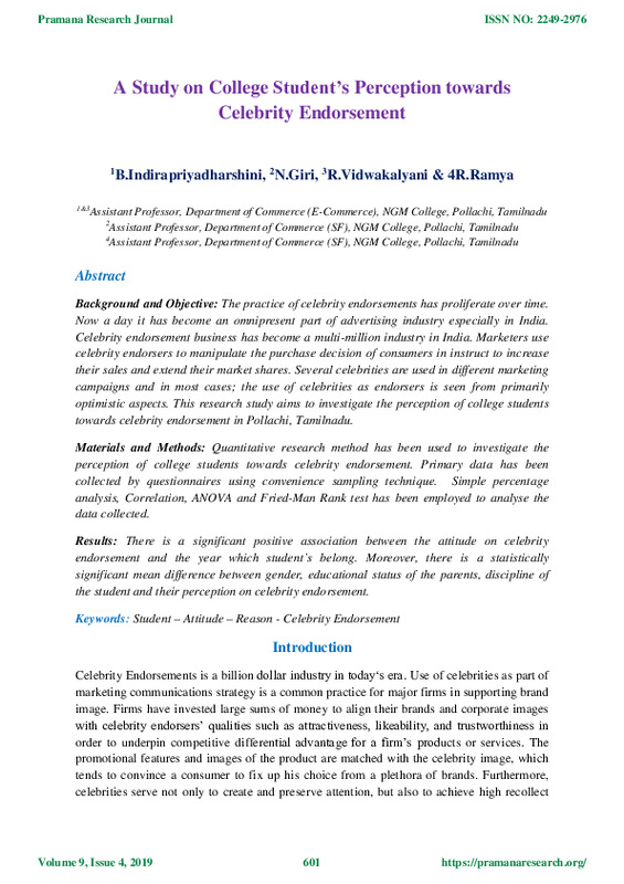 File #1490: "A Study on College Student’s Perception towards Celebrity Endorsement.pdf"