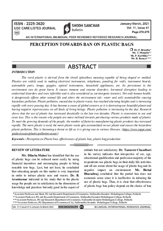 File #1499: "PERCEPTION TOWARDS BAN ON PLASTIC BAGS.pdf"