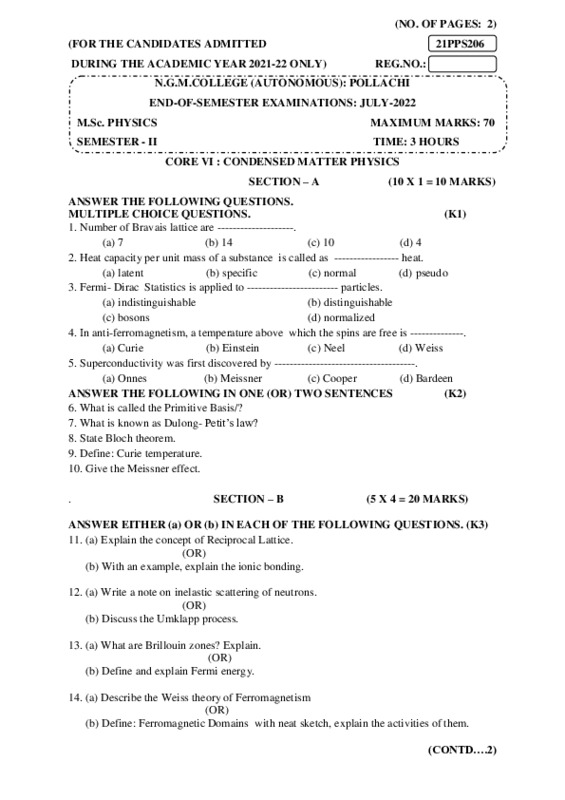 File #152: "21PPS206-CONDENSED MATTER PHYSICS.pdf"