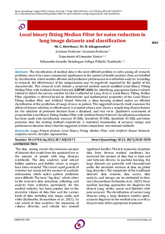 File #1548: "Local binary fitting Median Filter for noise reduction in lung image datasets and classification.pdf"