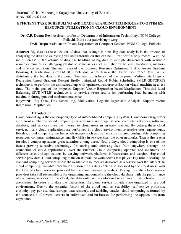 File #1568: "EFFICIENT TASK SCHEDULING AND LOAD BALANCING TECHNIQUES TO OPTIMIZE.pdf"