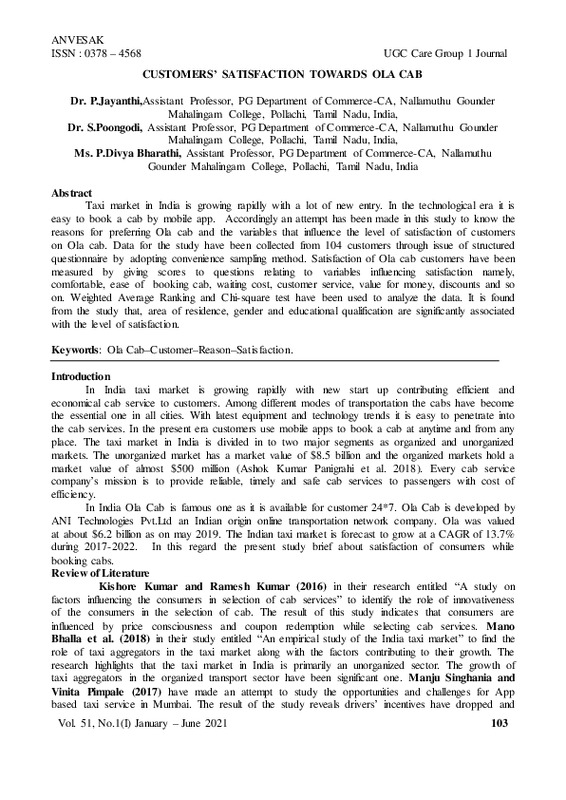 File #1645: "2021 publication Customers’ Satisfaction Towards Ola Cab.pdf"