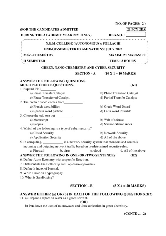 File #165: "21PCY2EA-GREEN, NANOCHEMISTRY AND CYBER SECURITY-QP.pdf"