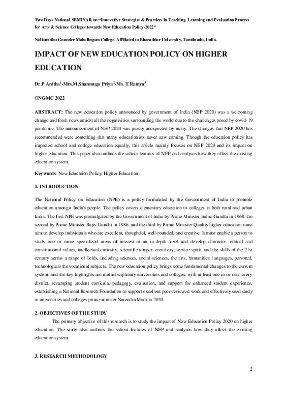 File #1676: "IMPACT OF NEW EDUCATION POLICY ON HIGHER EDUCATION.pdf"