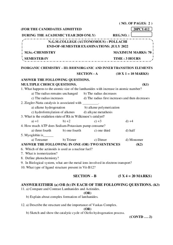 File #170: "20PCY412-INORGANIC CHEMISTRY – III BIOINORGANIC AND INNER TRANSITION ELEMENTS.pdf"