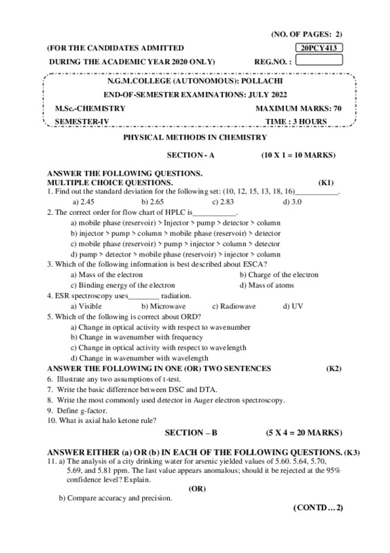 File #171: "20PCY413-PHYSICAL METHODS IN CHEMISTRY-ESE.pdf"