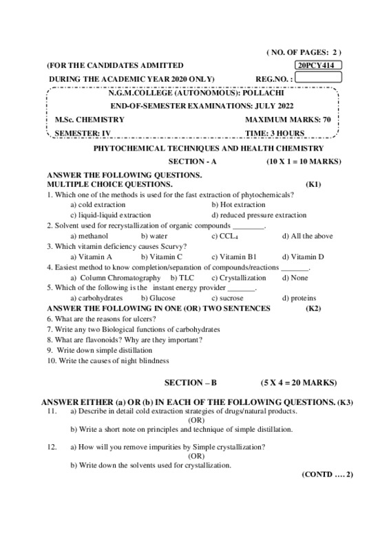 File #172: "20PCY414- PHYTOCHEMICAL TECHNIQUES AND HEALTH CHEMISTRY.pdf"