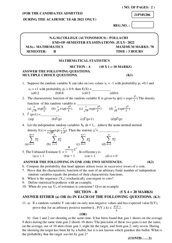 File #174: "21PMS206-MATHEMATICAL STATISTICS.pdf"