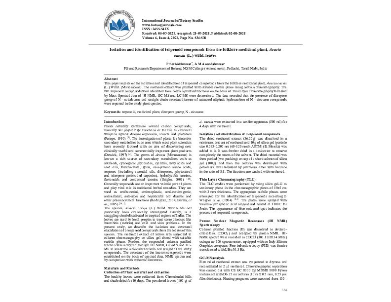 File #1864: "Isolation and identification of terpenoid compounds from the folklore medicinal plant, Acacia.pdf"