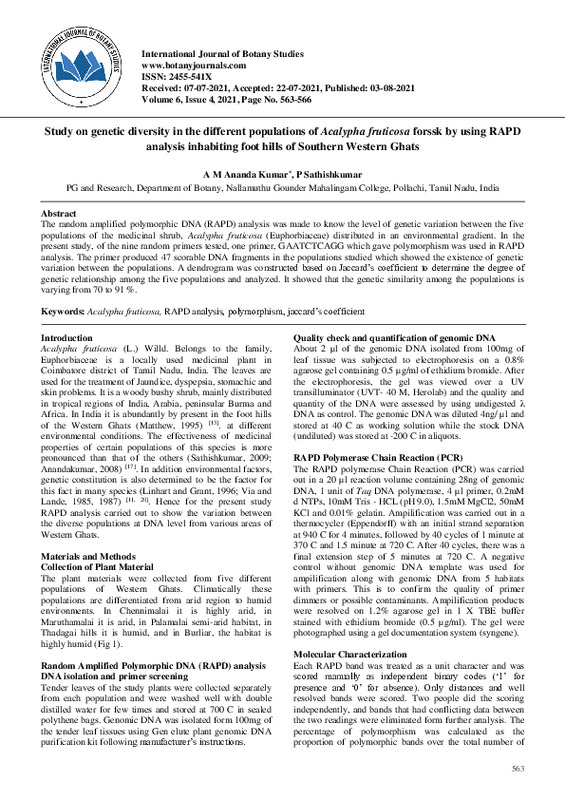 File #1869: "Study on genetic diversity in the different populations of Acalypha fruticosa forssk by using RAPD.pdf"