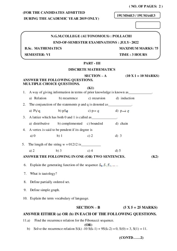 File #19: "19UMS6E3-DISCRETE MATHEMATICS.pdf"