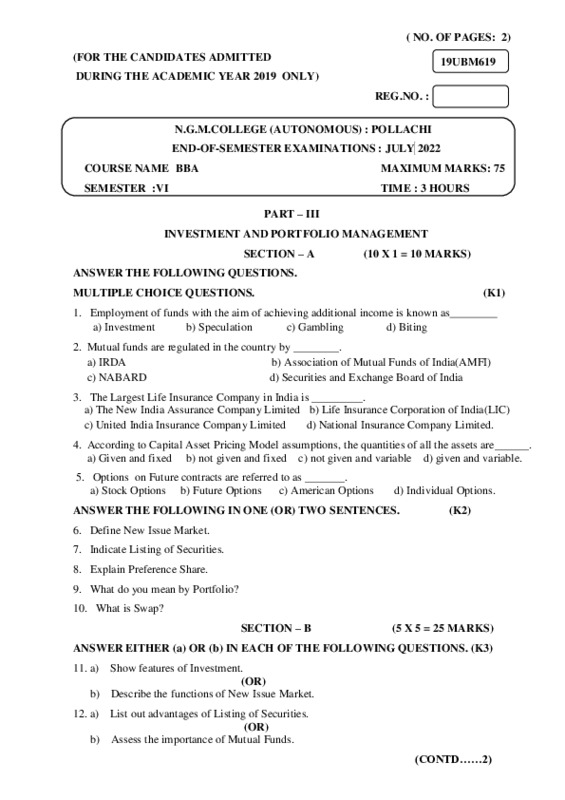 File #190: "19UBM619 - INVESTMENT AND PORTFOLIO MANAGEMENT.pdf"