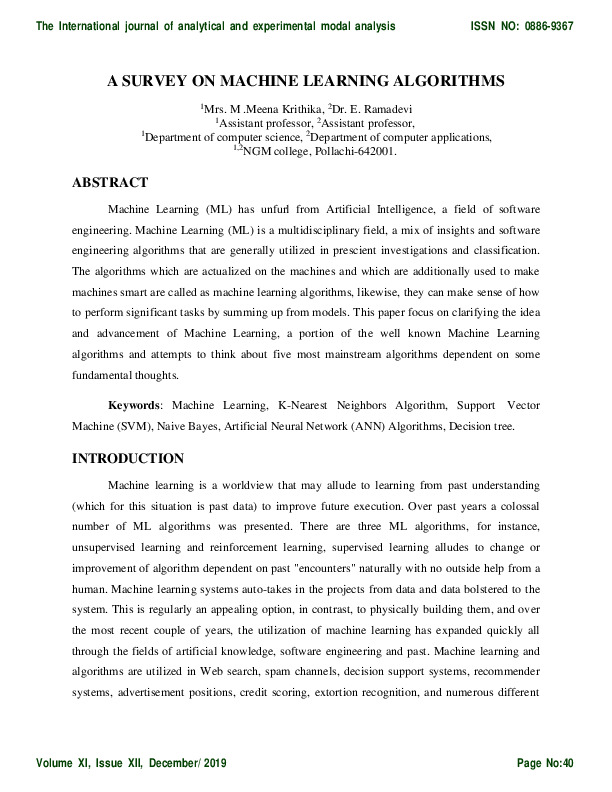 File #1974: "A SURVEY ON MACHINE LEARNING ALGORITHMS.pdf"