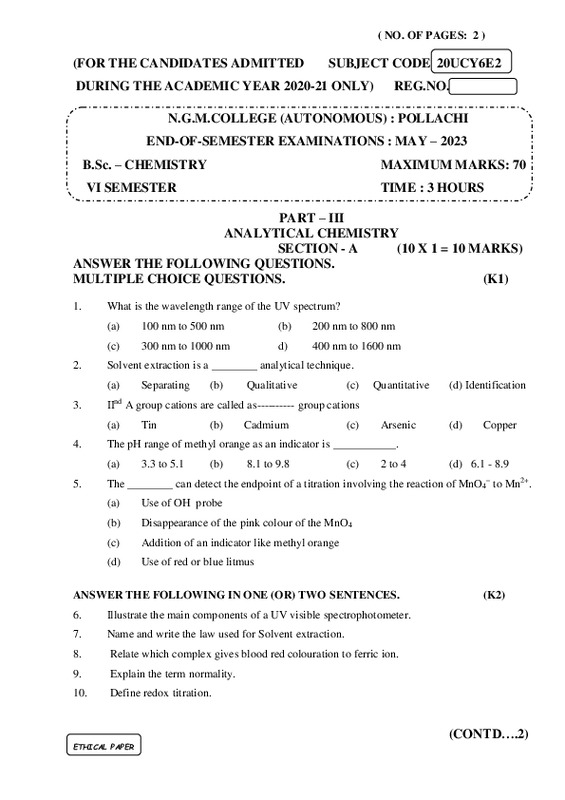 File #2040: "20UCY6E2 - ANALYTICAL CHEMISTRY.pdf"