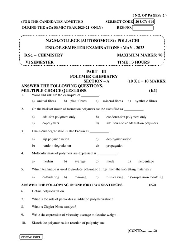File #2044: "20UCY614 - POLYMER CHEMISTRY.pdf"