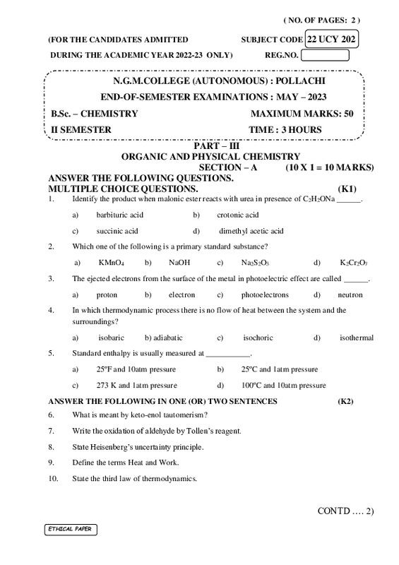 File #2047: "22UCY202 - ORGANIC AND PHYSICAL CHEMISTRY.pdf"