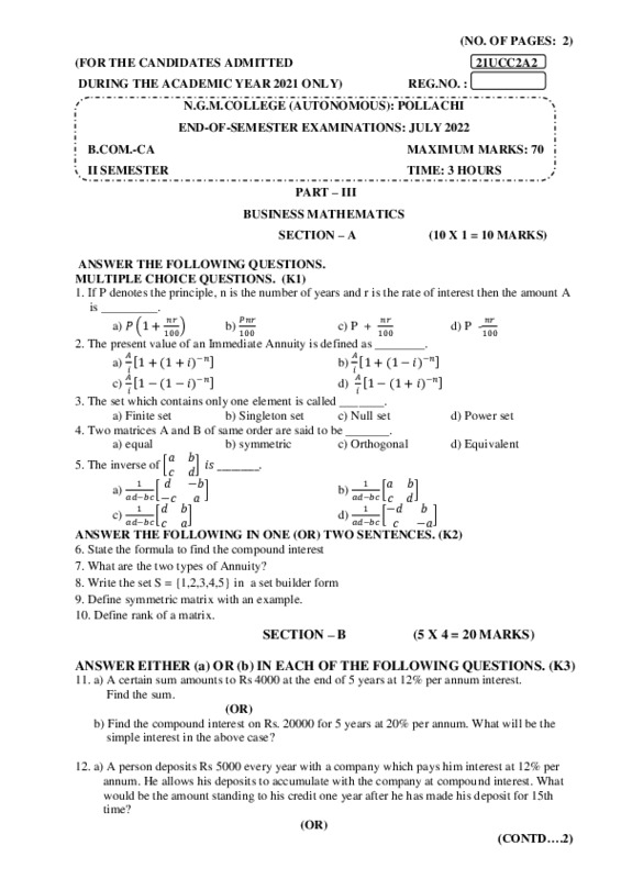 File #208: "21UCC2A2 – BUSINESS MATHEMATICS.pdf"