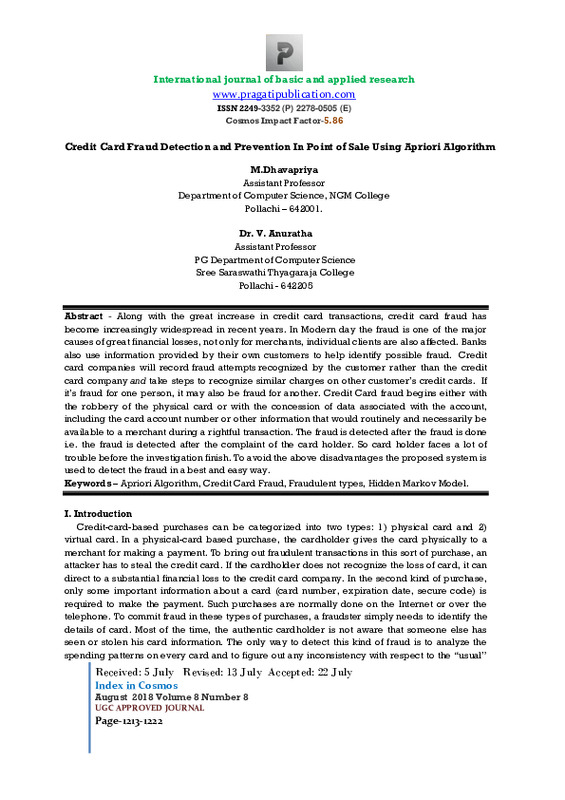 File #2084: "Credit Card Fraud Detection and Prevention In Point of Sale Using Apriori Algorithm.pdf"