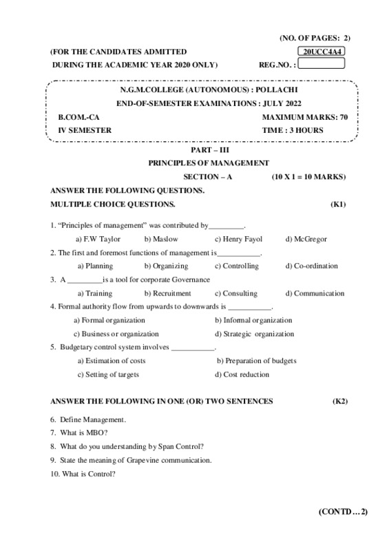 File #210: "20UCC4A4-PRINCIPLES OF MANAGEMENT-QP.pdf"