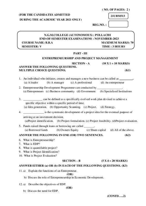 File #2107: "21UBM513-ENTREPRENEURSHIP AND PROJECT MANAGEMENT.pdf"