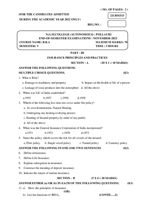 File #2109: "21UBM515-Insurance Principles and practices.pdf"